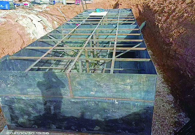 将污水进一步与微生物混合,充分利用池内细菌载体,提高污水生化性能,以利于后道生物拉触氧化处理池进一步氧化分解,同时通过高效好氧池回流的硝炭氮在硝化菌的作用下,可进行部分硝化和反硝化,去除氨氮。该池设计为钢制结构的箱体,集成到一体化污水处理设备内。应用到专利技术为:一种小型污水处理设备(专利号:ZL201922463361.0)及一种一体化污水处理设备(专利号:ZL201922463372.9)。